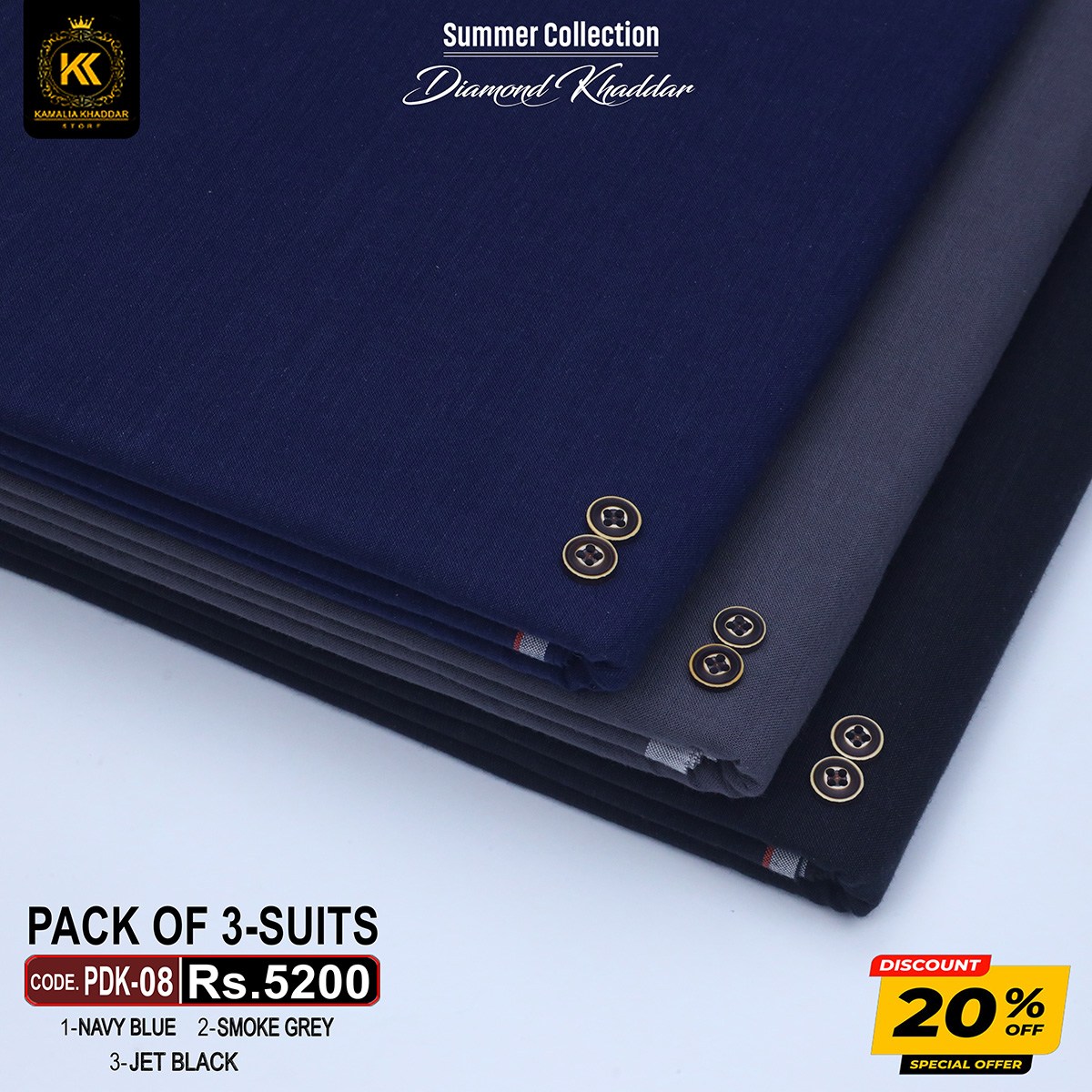 KAMALIA SUMMER DIAMOND KHADDAR is a Non-Chemicalized Fabric Characterized By Luster, Durability, And An Intense Soft Feel For Human Skin.