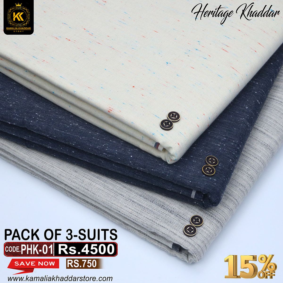 HERITAGE KHADDAR (PACK OF 3 SUITS) PHK-01